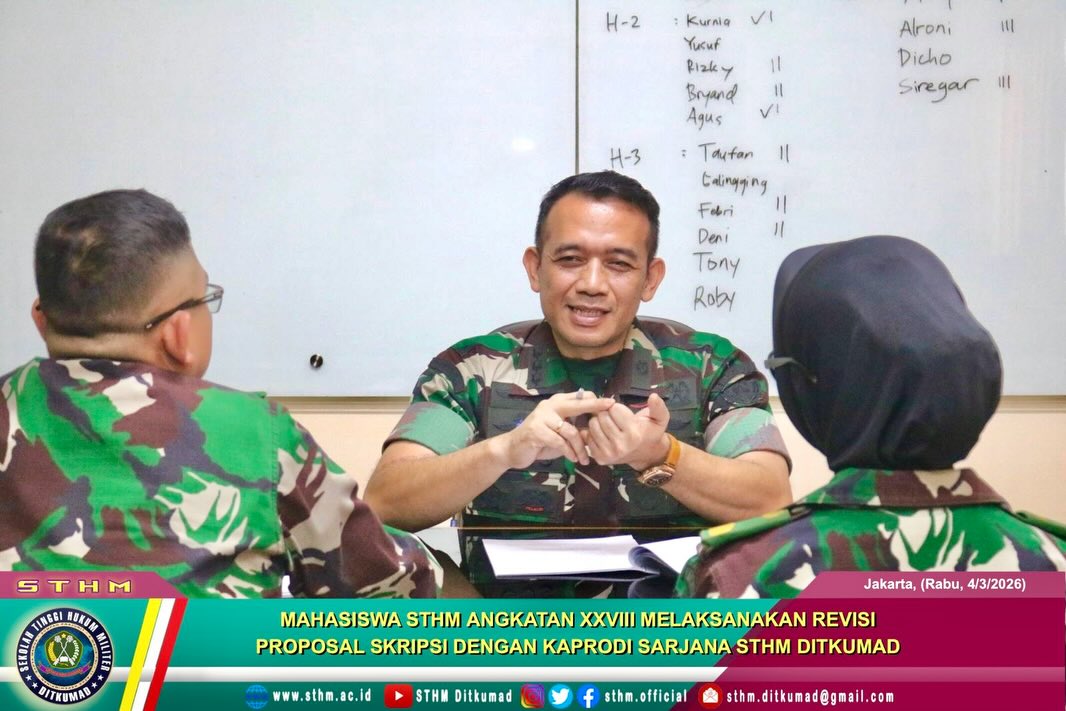 Sekolah Tinggi Hukum Militer (STHM) DitkumadPada Rabu, 4 Maret 2026, Sekolah Tinggi Hukum Militer (STHM) Ditkumad menyelenggarakan kegiatan Perbaikan Revisi Sidang Proposal Skripsi bagi Mahasiswa...