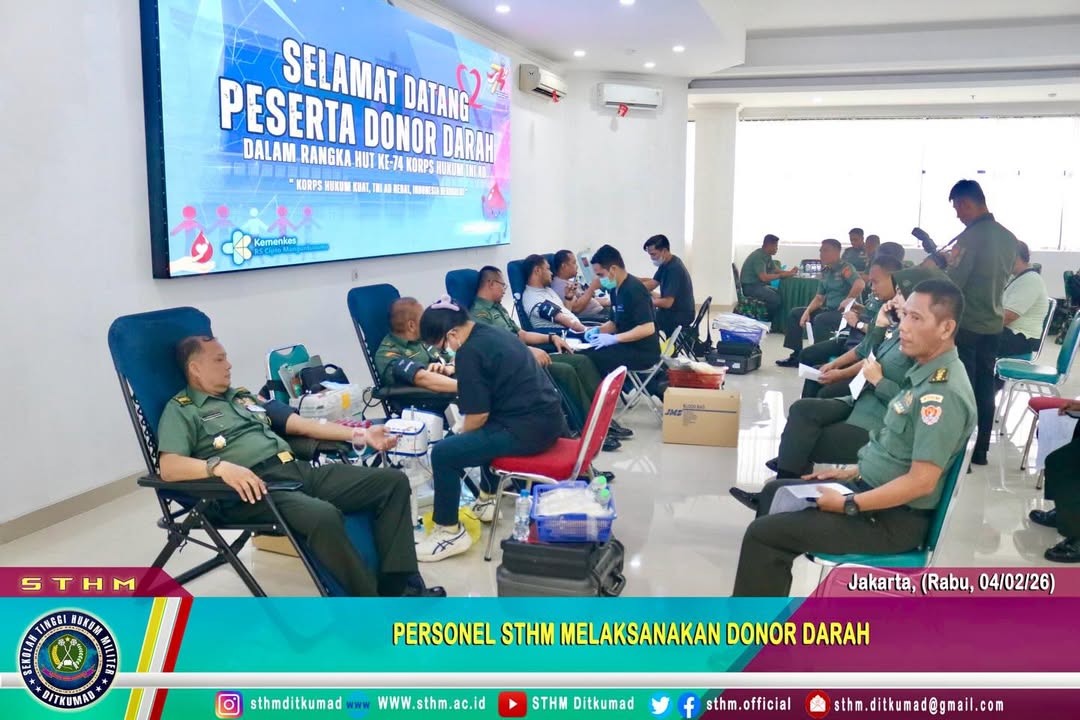 Jakarta, sthm. AC. Id - Dalam rangka menyambut hari jadi ke-74 Korps Hukum TNI AD, Personel Sekolah Tinggi Hukum Militer (STHM) berpartisipasi dalam kegiatan donor darah yang diadakan oleh...