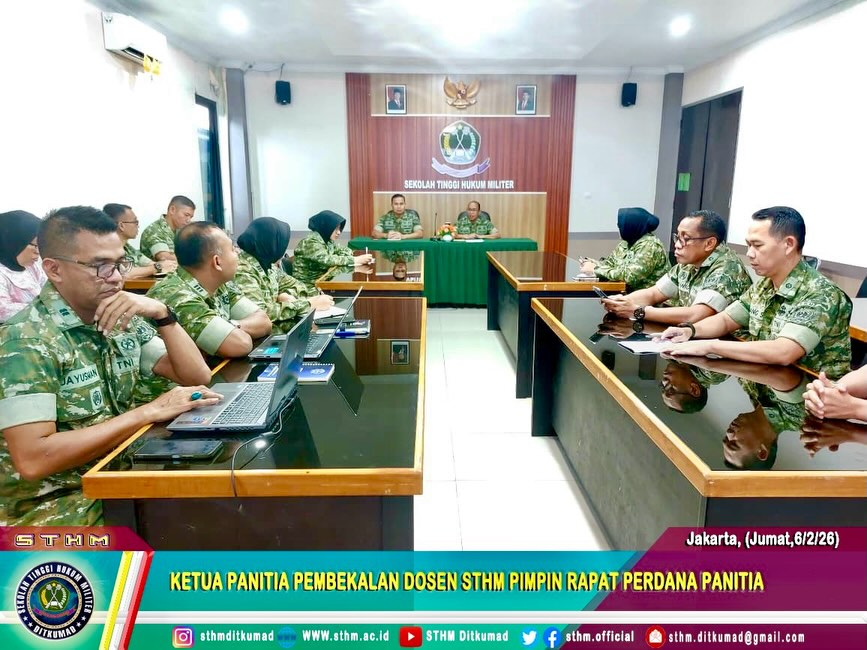 Jakarta, sthm.ac.id – Ketua Panitia pembekalan bagi Dosen Sekolah Tinggi Hukum Militer (STHM), Kolonel Chk (K) Dame Sinuria Sianturi, S.H., M.H., memimpin rapat perdana panitia pembekalan Dosen...
