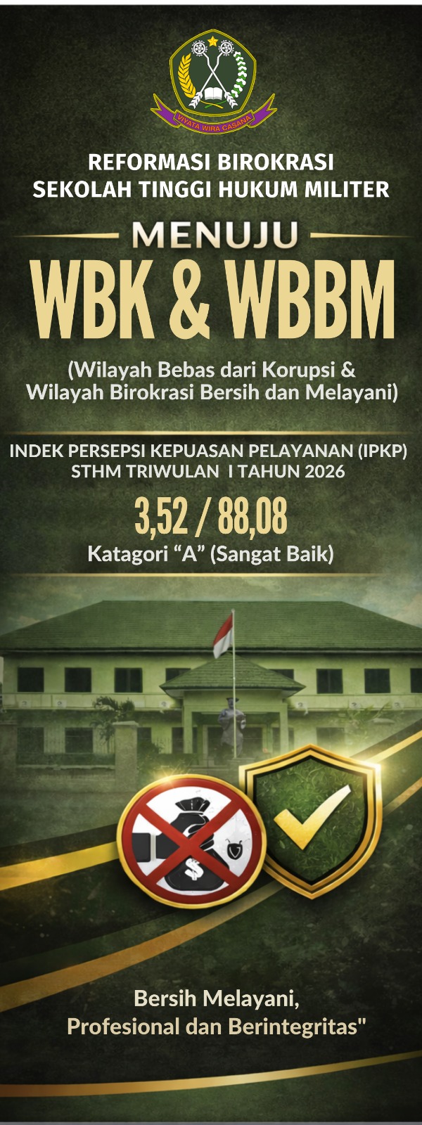 Jakarta. Sthm.ac.id - Upaya berkelanjutan dalam meningkatkan kualitas pelayanan publik yang prima kembali membuahkan hasil positif bagi Sekolah Tinggi Hukum Militer (STHM). Berdasarkan hasil pengukuran Indeks Persepsi Kepuasan Pelayanan (IPKP) Triwulan I Tahun 2026, STHM berhasil meraih nilai 3,52 atau setara dengan 88,08 dalam skala konversi, dengan predikat Kategori “A” (Sangat Baik).