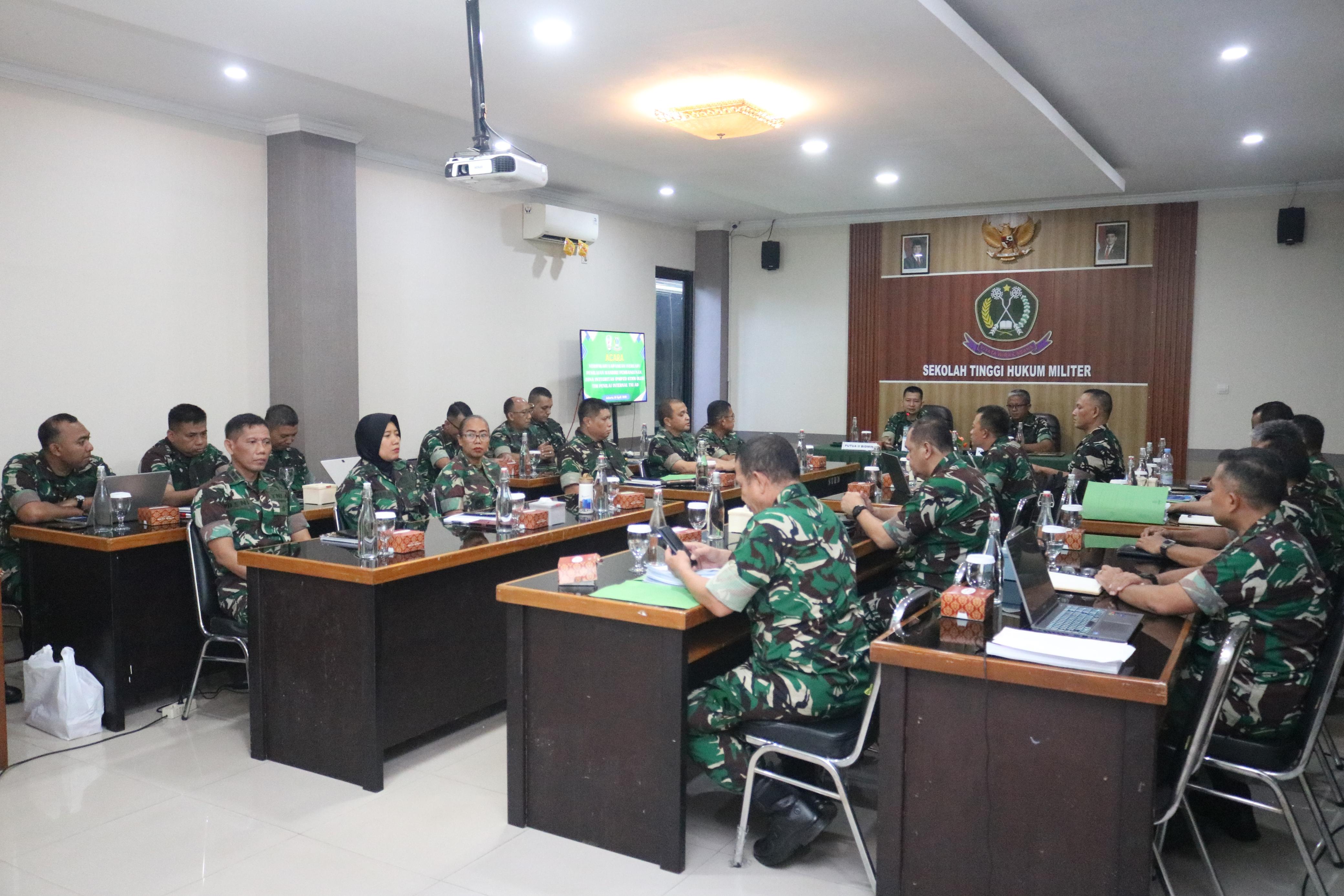 Jakarta, sthm.ac.id – Tim Penilai Internal (TPI) Pembangunan Zona Integritas (ZI) TNI Angkatan Darat melaksanakan verifikasi lapangan di Sekolah Tinggi Hukum Militer (STHM) dalam rangka penilaian pembangunan Zona Integritas menuju Wilayah Bebas dari Korupsi (WBK). Jum’at (10/4/26)
