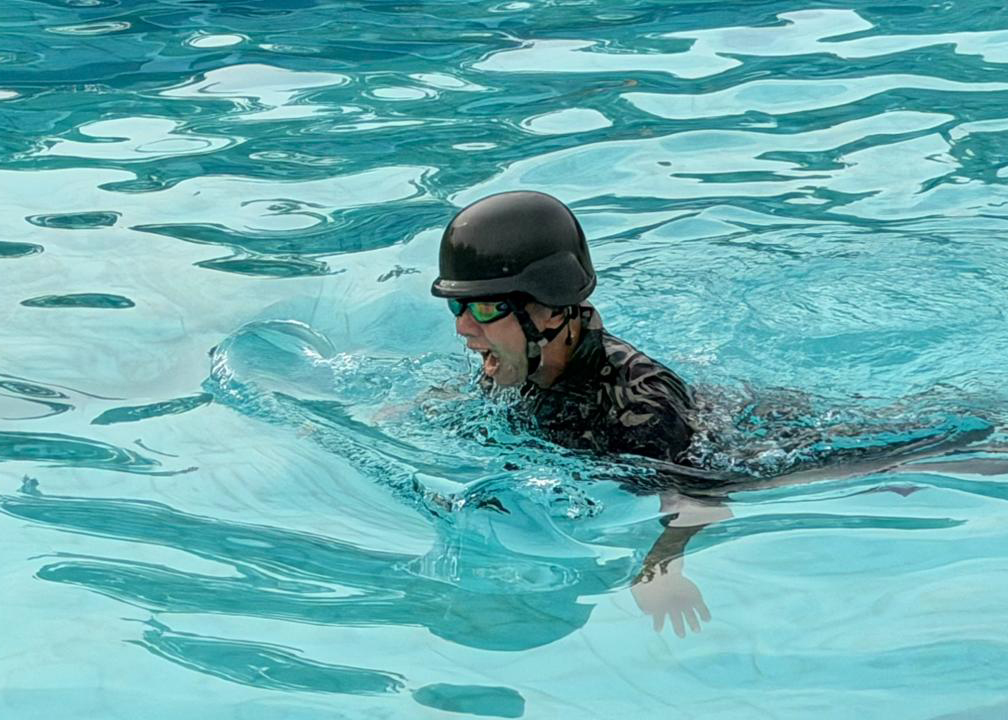 Adapun materi yang diujikan dalam kegiatan ini meliputi kemampuan renang militer sejauh 50 meter menggunkan pakaian lengkap yang menuntut kesiapan fisik dan mental para peserta.